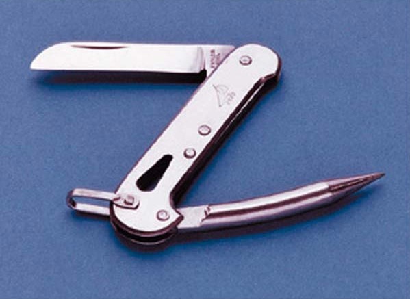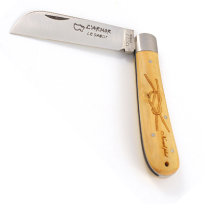 Of the couple of pocketknives that I do own, other than my vintage Opinel, there is one that I love dearly. There are many ways to call it, but the most common denomination in English is the sailor’s knife. Made with fisherman and sailors in mind, it usually has a hole or loop at the end of the handle meant for handing it from your belt. The shape of the blade, called “sheep’s foot”, was the only one allowed on board boats because there was less danger of its round end causing serious injuries if fights occurred amongst the often-rowdy sailors (as well as for the less romanticized safety reason of using a non-pointed blade in slippery conditions and in choppy waters). Over the years a Marlinspike was added to integrate a useful knot-handling tool and leather hole puncture. There are numerous companies that make such blades, some more traditional (L’Armor Le Sabot) and some more high-tech (Spyderco). There are many other well-known blade manufacturers that have produced a sailor knife at one time or another such as Camillus, Buck, Case, Schrade and Ka-Bar among others. They are just as useful on land as at sea even if you are not hunting Moby Dick and need to cut some fishing line or loosen a wet knot while sailing. When my son is old enough I will enjoy teaching him how to handle one of mine properly and hopefully he will hand mine down in turn.